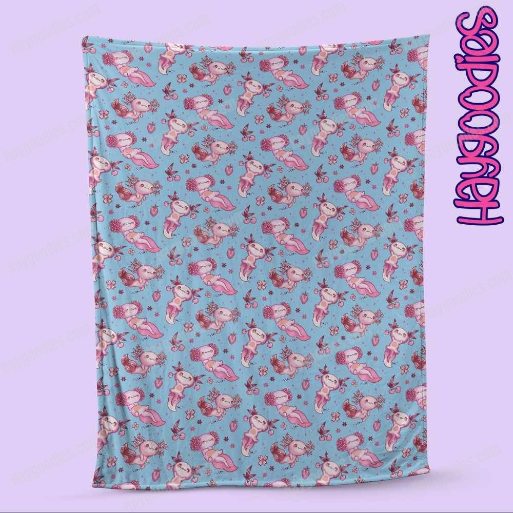 Cute Axolotls Pattern Super Soft Micro Fleece Blanket-Pink or Blue-Various Sizes